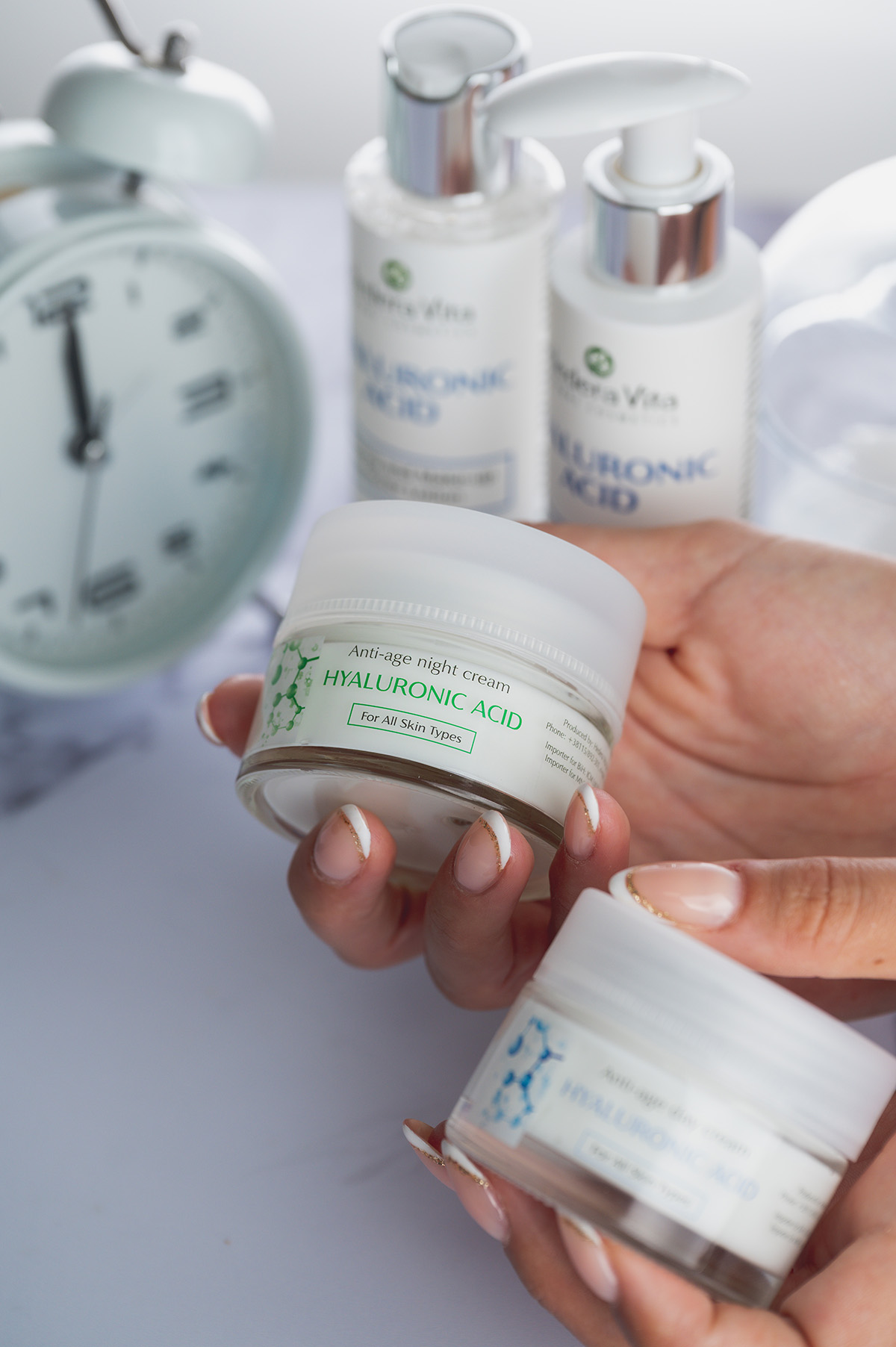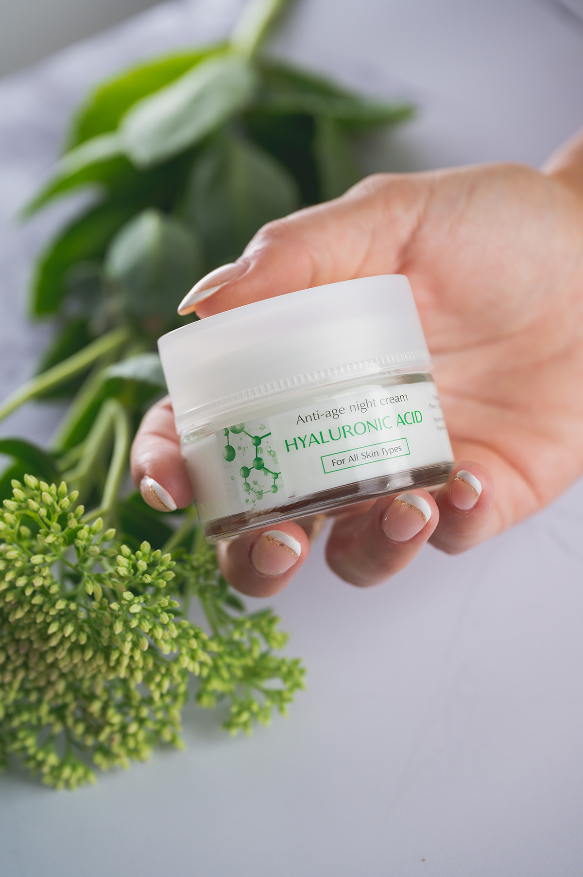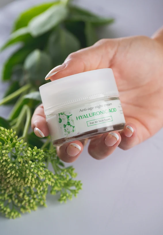 Anti-age noćna krema sa hijaluronskom kiselinom – HYALURONIC ACID obnavlja i hrani kožu dok spavate, pružajući joj intenzivnu hidrataciju. Njena formula sa hijaluronskom kiselinom pomaže u smanjenju bora i poboljšava tonus kože.